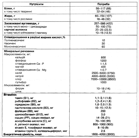 Таблиця 1. Формула збалансованого харчування (в дужках середня потреба)