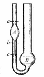В добре вимитий, висушений віскозиметр вводять піпеткою певну кількість зневодненого і профільтрованого нафтопродукту, якщо аналізують дуже в’язкий нафтопродукт то віскозиметр заповнюють засмоктуванням його через коліно 1. Для цього віскозиметр перевертають і коліно 1 занурюють в посудину з досліджуваною рідиною за допомогою гумової груші засмоктують через коліно 2 досліджувану рідину, якщо вона дуже густа то її підігрівають. При наповненні слідкують щоб не було пухирців повітря. Далі його встановлюють у термостат де витримують протягом 30 хв при заданій температурі. Коли рідина дійде до мітки 3 включають секундомір і зупиняють його тоді, коли рідина пройде нижню мітку,віднімають час витікання рідини від верхньої до нижньої мітки. Вимірювання проводять не менше 5 разів. Беруть середнє значення. При роботі слідкують за тим, щоб на шариках і капілярах не утворювалась плівка, яка порушує режим витікання. = К*Т.