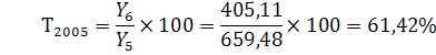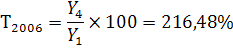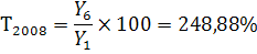 Для каждого последующего года рассчитывается как отношение предшествующего уровня к 100: