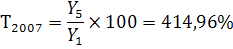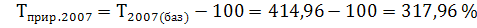 а) Цепной. Определяется как отношение каждого последующего уровня ряда динамики к предыдущему, умноженному на сто. (Темп прироста обозначим через Т):
