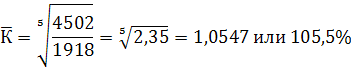 По результату расчета видно, что денежная выручка ежегодно увеличивалась на 105,5%.