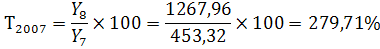 Цепные показатели роста цены реализации 1 ц подсолнечника говорят о неустойчивой динамике движения цен. Резкое повышение уровня цен произошло в 2007 году, темп роста составил 279,71%, а в 2006 году он составил 111,90%. В период с 2001 по 2008 годы наблюдается скачкообразный темп роста, тенденция не выявлена.