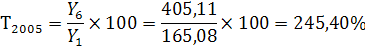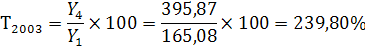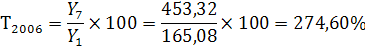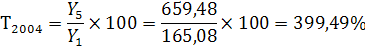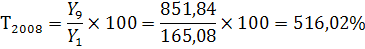 б) Базисный. Определяется как отношение каждого последующего уровня изменения к начальному, который принимается за базу сравнения и умножается на сто.