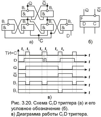-типа получил широкое применение в интегральной схемотехнике. Схема триггера, ее обозначение и временная диаграмма работы представлены на рис. 1.