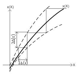 ) границі зведеної похибки приладу змінюються лінійно. Таке нормування зумовлено тим, що для цифрових приладів характерна як адитивна (що не залежить від значення вимірюваної величини), так і мультиплікативна (що лінійно, прямо пропорційно залежить від значення вимірюваної величини) похибки.