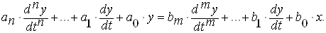в динамічному режимі роботи. При його складанні в праву частину рівняння записують вхідний сигнал (причину, що привела засіб вимірювання в дію), а в ліву – вихідний сигнал (реакцію засобу вимірювання). В загальному вигляді диференціальне рівняння має вигляд: