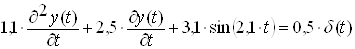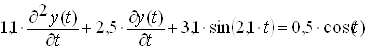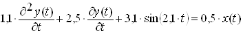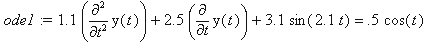 x(t):=cos(t); ode1:=1.1*diff(diff(y(t),t),t)+2.5*diff(y(t),t)+3.1*sin(2.1*t)=