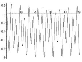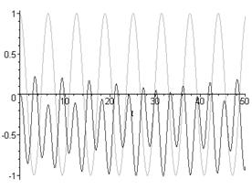 with(plots):plot({cos(t),y1(t)},t=0..50);