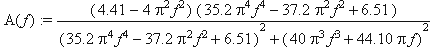 A(f):=(4.41-(2*Pi*f)^2)*(2.2*(2*Pi*f)^4-9.3*(2*Pi*f)^2+