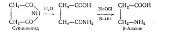 1. Из имида янтарной кислоты (сукцинимида) по реакции Гофмана при взаимодействии с гипохлоритом или гипобромитом натрия или калия в присутствии щелочи по схеме: