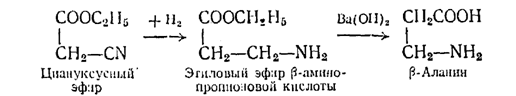 Выход р-аланина достигает 72%, но циануксусный эфир дорог.
