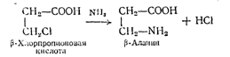 3. Из галогенопропионовой кислоты аммонолизом по схеме: