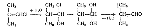 1) гидратацией хлористого диметилэтилена с последующим омылением и дегидратацией: