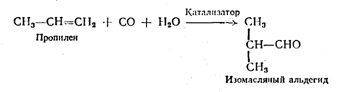 Первые два метода для промышленного применения не приемлемы из-за дефицитности сырья. Что касается третьего метода, то недостатком его является побочная реакция, обусловливающая дальнейшее окисление альдегида в изомасляную кислоту и этерификация ее нзобутиловым спиртом, не вошедшим в реакцию. В результате этой реакции образуется в значительном количестве изобутиловый эфир масляной кислоты, что значительно снижает выход изомасляного альдегида (около 40%). Кроме того, бихромат калия также дорог и дефицитен. Наилучшую перспективу для промышленного применения имеет метод синтеза изомасляного альдегида путем каталитического дегидрирования изобутилопого спирта кислородом воздуха на медном или серебряном катализаторе при температуре 230— 300° С с выходом 80—90%. В дальнейшем было показано, что серебряный катализатор, нанесенный на пемзу, при температуре 500 - 600° С более эффективен по сравнению с медным. По-видимому, вопрос о выборе катализатора для данного процесса должен быть дополнительно изучен. В качестве промышленного метода может быть осуществлен оксосинтез: