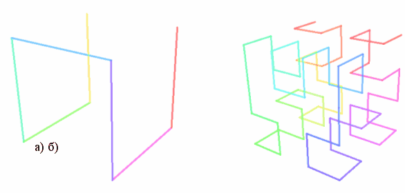 . У цьому випадку для послідновності присутні також три вищеперелічених випадків, але внутрішня точка, до якої прямує послідовність, вже не є нулем, а границя вже не є плоскою, вона надто крива(мал.19). Саме це Б. Мандельброт назвав фрактальной структурой такої границі.
