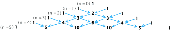 . Починаючи з трикутника, що складається з одиниць, обчислюють значення на кожному наступному рівні шляхом додавання сусідніх чисел; останньою ставлять одиницю.