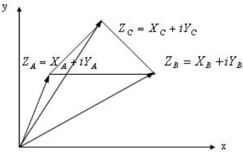 на комплексній площині Z, яке переводить рівносторонній трикутник з довжиною сторони рівній одиниці в рівносторонній трикутник в два рази меншого розміру представлений на мал. 8.