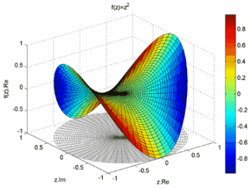 Графік комплексної функції можна було б побудувати в чотиривимірному (4D) просторі (дві координати потрібно для зображення