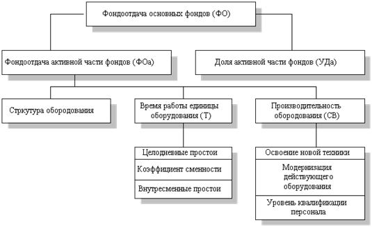 Совокупность факторов, влияющих на показатель фондоотдачи и их подчиненность, показана на рисунке 1.