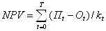 Чистый дисконтированный доход (NPV) - сумма текущих эффектов за весь расчётный период, приведённая к начальному интервалу планирования. Величина NPV для постоянной нормы дисконта определяется по формуле: