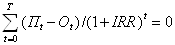 Внутренняя норма доходности (IRR) - представляет собой ту норму дисконта, при которой дисконтированные притоки денежных средств по проекту равны дисконтированным оттокам. IRR определяется исходя из равенства: