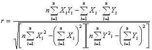 При малом числе наблюдений выборочный коэффициент корреляции удобно вычислять по следующей формуле: