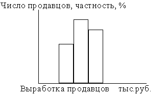 Интервальный ряд распределения изображается графически в виде гистограммы. На оси «х»- отображаются интервалы ряда, высота которых равна частотам, отложенным на оси «у».