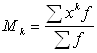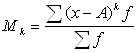 Моментом k‑го порядка называется средняя арифметическая из k‑той степени отклонений отдельных вариантов от некоторой постоянной величины А: