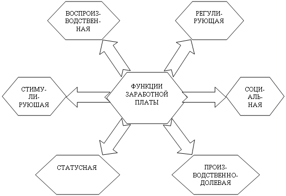 Оплата труда в нашей стране играет двоякую функцию: с одной стороны, является главным источником доходов работников и повышения их жизненного уровня, с другой - основным рычагом материального стимулирования роста и повышения эффективности производства. Наиболее важными являются следующие функции заработной платы: воспроизводственная, стимулирующая, статусная, регулирующая, социальная и производственно-долевая (Рисунок 1.1).