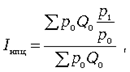 где Q0 - объем потребительской корзины в базисном периоде; p1 p0 - цена товара (услуги) в потребительском наборе отчетного (текущего) и базисного периодов.