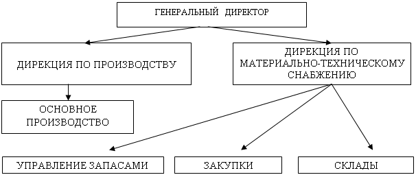 Как видно, задачи «что закупать»и «сколько закупать» решаются дирекцией по производству. Здесь же выполняются работы по складированию закупленных предметов труда.