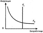 Необходимо отметить существование взаимосвязи между инфляцией и безработицей. Попытка определить данную взаимосвязь была предпринята английским экономистом А. Филлипсом в 50-е годы. В своем исследовании «Связь между безработицей и темпами изменения 1861–1957 гг.» он показал, что на протяжении изучаемого периода в Англии темпы роста средней денежной заработной платы и уровня безработицы находились в обратной зависимости, т.е. чем выше были темпы роста зарплаты, тем ниже безработица, и наоборот. Поскольку рост заработной платы является одним из важнейших факторов инфляции, то в модифицированном виде кривая Филлипса была представлена как обратная зависимость между ростом цен Р (инфляцией) и уровнем безработицы U. Кривая Филлипса в краткосрочном периоде Fg, в соответствии с рисунком 1.