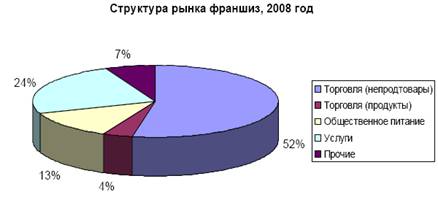 Структура рынка франшиз в России в 2008 г. представлена на рис.1