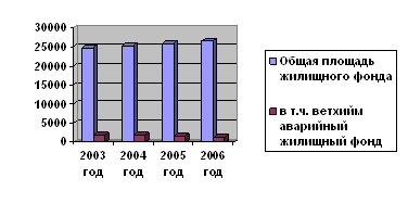 По предварительным данным на 01.01.2007 года объем жилищного фонда Ханты-Мансийского автономного округа – Югры составил 26,5 млн. м2. В сравнении с 2005 годом произошел прирост объема жилищного фонда, который составил 640,8 тыс. м2 (2,5%) общей площади жилищного фонда. В течение 2006 года снос ветхого и аварийного жилья, осуществляемый в рамках реализации жилищных программ, составил около 222,7 тыс. м2 и на 01.01.2007 года доля ветхого и аварийного жилья составила 5,0% от общего объема жилищного фонда. (31)