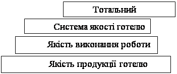 Якість послуг готелю — результат праці, предметів праці, засобів праці, технології, управління, обслуговуючого середовища в цілому (12, с. 127).