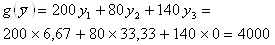 Решая систему уравнений получим, y1 = 6,67, y2 = 33,33, y3 = 0.