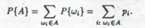 Вероятность любого события А определяется как сумма вероятностей всех элементарных событий, составляющих событие А, т.е. если использовать символику Р{А} для обозначения вероятности события А, то