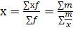 , применяется формула ср. гармонической взвешенной, что бы исчислить ср обозначим х*f=m откуда определим f=m/х получим формулу: