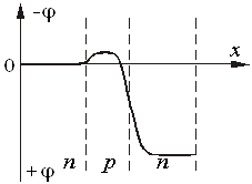 Мал.4 Потенційна діаграма роботи n–p–n транзисторa