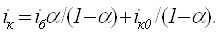 де a–коеффіциент передачі струму емітера, що є основним параметром транзистора. При нормальних струмах він може мати значення від 0,950 до 0,998. Чим слабкіше рекомбінація інжектованих носіїв в базі, тим ближче а до 1.