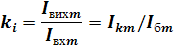 Коефіцієнт підсилення по струму ki – це відношення амплітуд (або значень, що діють) вихідного і вхідного змінного струму, тобто змінних складових струмів колектора і бази: