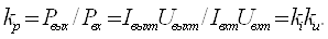 Коефіцієнт підсилення по потужності kp=ki · ku. Оскільки,