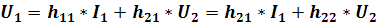 Система h – параметрів набула широкого поширення, тому що при вимірі цих параметрів потрібне відтворення холостого ходу на вході (I_1=0) або короткого замикання на виході (U_2=0), що легко виконувати. У цій системі параметрів рівняння чотириполюсника записується у вигляді: