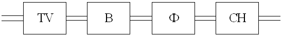 На вход подается переменное напряжение Uc, которое с помощью трансформатора TV изменяется до требуемой величины. Кроме того, трансформатор осуществляет гальваническую развязку источника выпрямленного напряжения нагрузочного устройства, что позволяет получать с помощью нескольких вторичных обмоток различные значения напряжений, гальванически не связанные. После трансформатора переменное напряжение с помощью выпрямителя В преобразуется в пульсирующее напряжение. В выпрямленном напряжении помимо постоянной составляющей, присутствует и переменная, которая с помощью сглаживающего фильтра Ф снижается до требуемого уровня, так, что напряжение на выходе фильтра имеет очень малые пульсации. Установленный после фильтра стабилизатор постоянного напряжения СН поддерживает неизменным напряжение UН на нагрузке при изменении значений выпрямленного напряжения или сопротивления нагрузки.