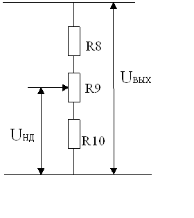 Измерительный элемент представляет собой делитель напряжения на резисторах R8, R9, R10. Он представлен на рисунке 3.2.