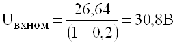 Определим номинальное напряжение на входе стабилизатора
