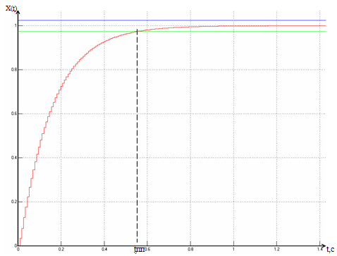 Как видно из графика время переходного процесса не отвечает заданым критериям, а поэтому необходимо использовать регулятор для улучшения скорости.
