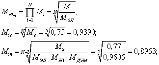 Теперь распределим частотные искажения между каскадами усилителя, зная, что у каскада на ПТ (из-за схемотехники каскада), ЭП и двухтактного УМ они равны Мн=0,9 ÷ 0,99, а у всех остальных положив равными: