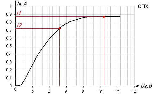 На выходных характеристиках транзистора построим нагрузочную прямую (см. рисунок) и определим по ней исходный ток коллектора: