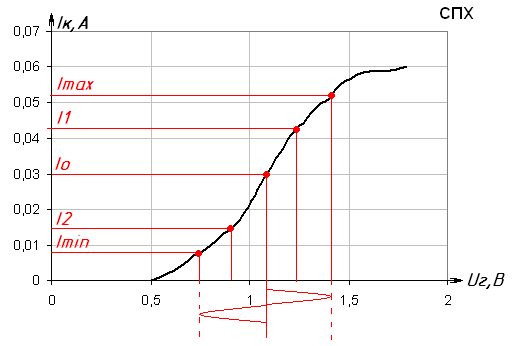 Imвых = 0,0121 А – амплитуда тока сигнала на выходе каскада;